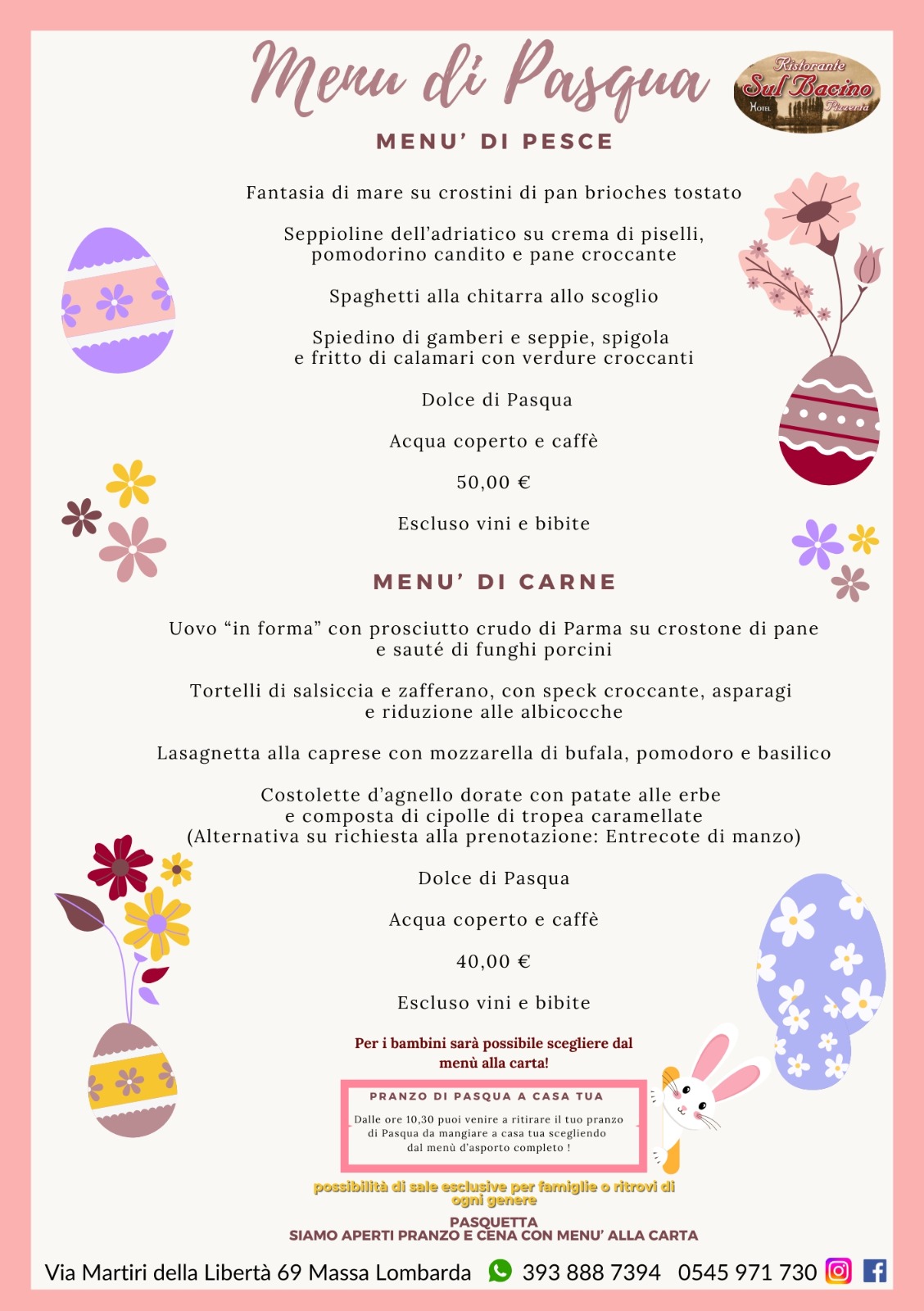 Pranzo di Pasqua 2 menu tra cui scegliere al momento della prenotazione: